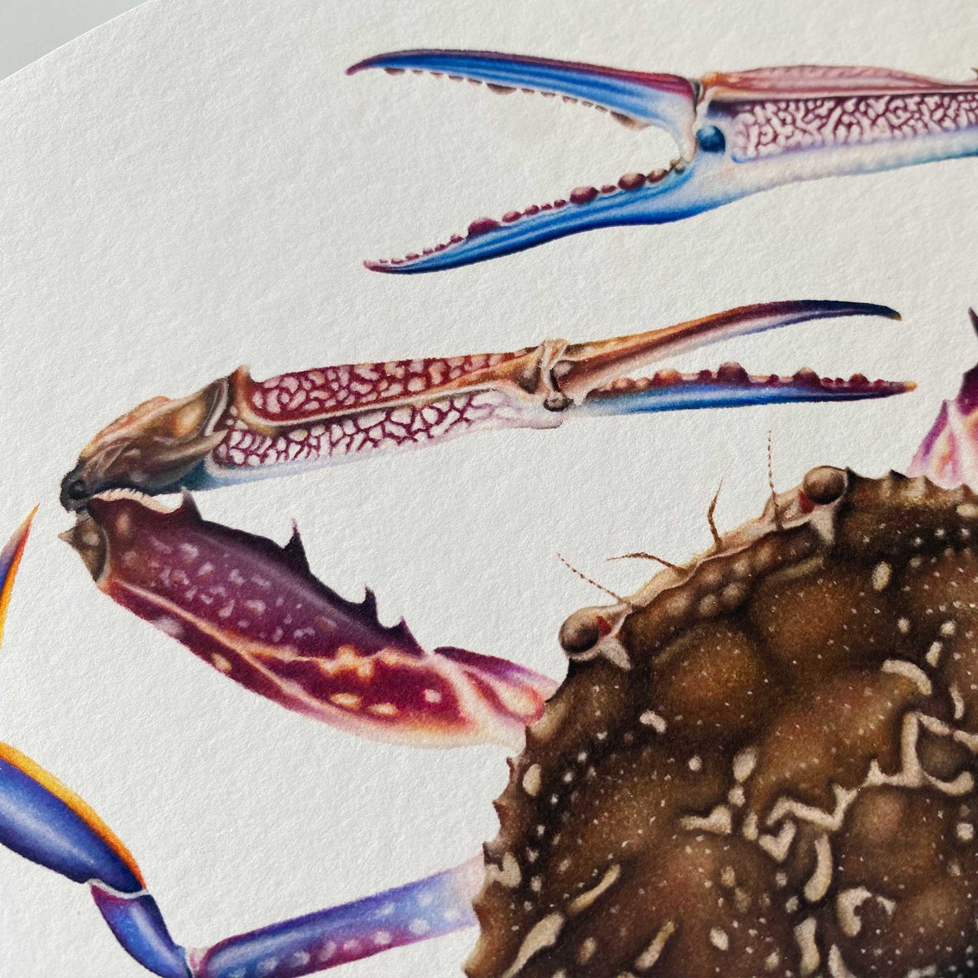A limited edition, Fine Art Giclée Print of Brittany's original Blue Swimmer Crab artwork.