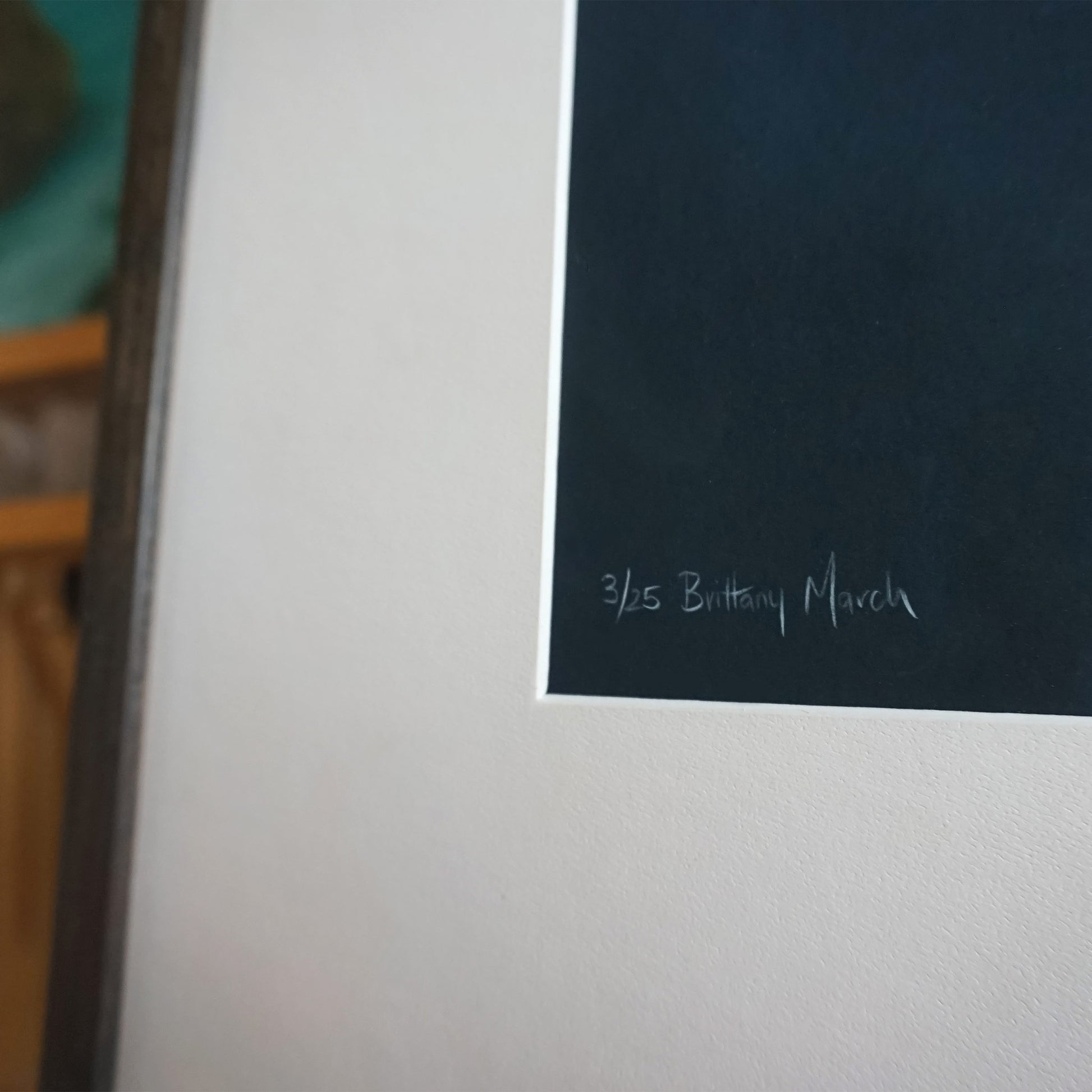 Framed behind museum grade glass in a stained black wood profile. Internationally Awarded*