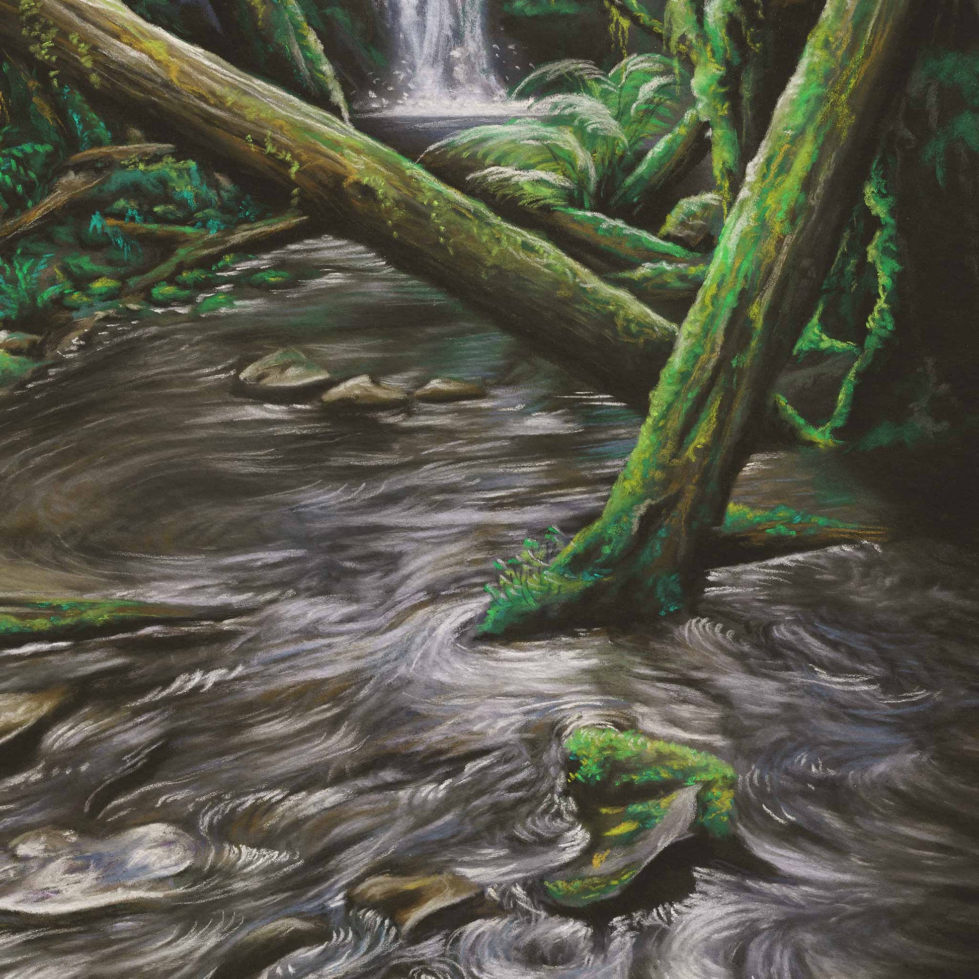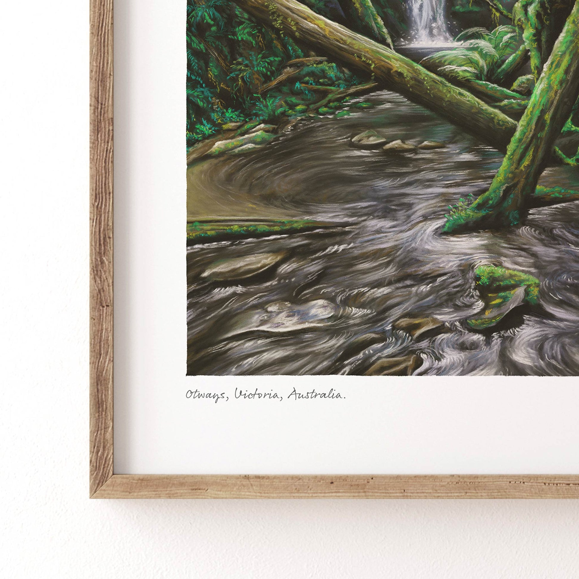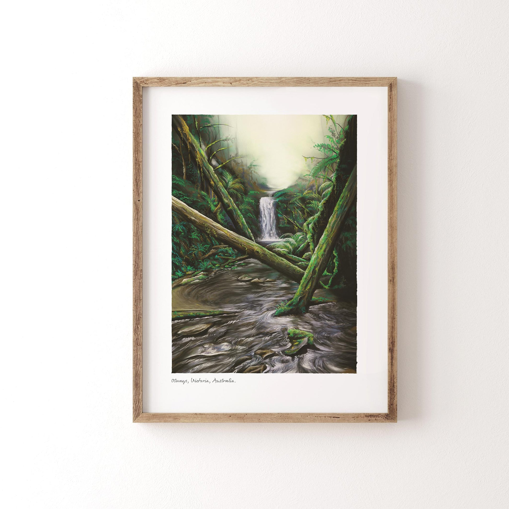 Discover the beauty of the Otways, along the Great Ocean Road. Internationally acclaimed soft pastel artist Brittany March presents this stunning fine art print of her original landscape of a waterfall in the Otways, perfect for adding serenity and elegance to any space.