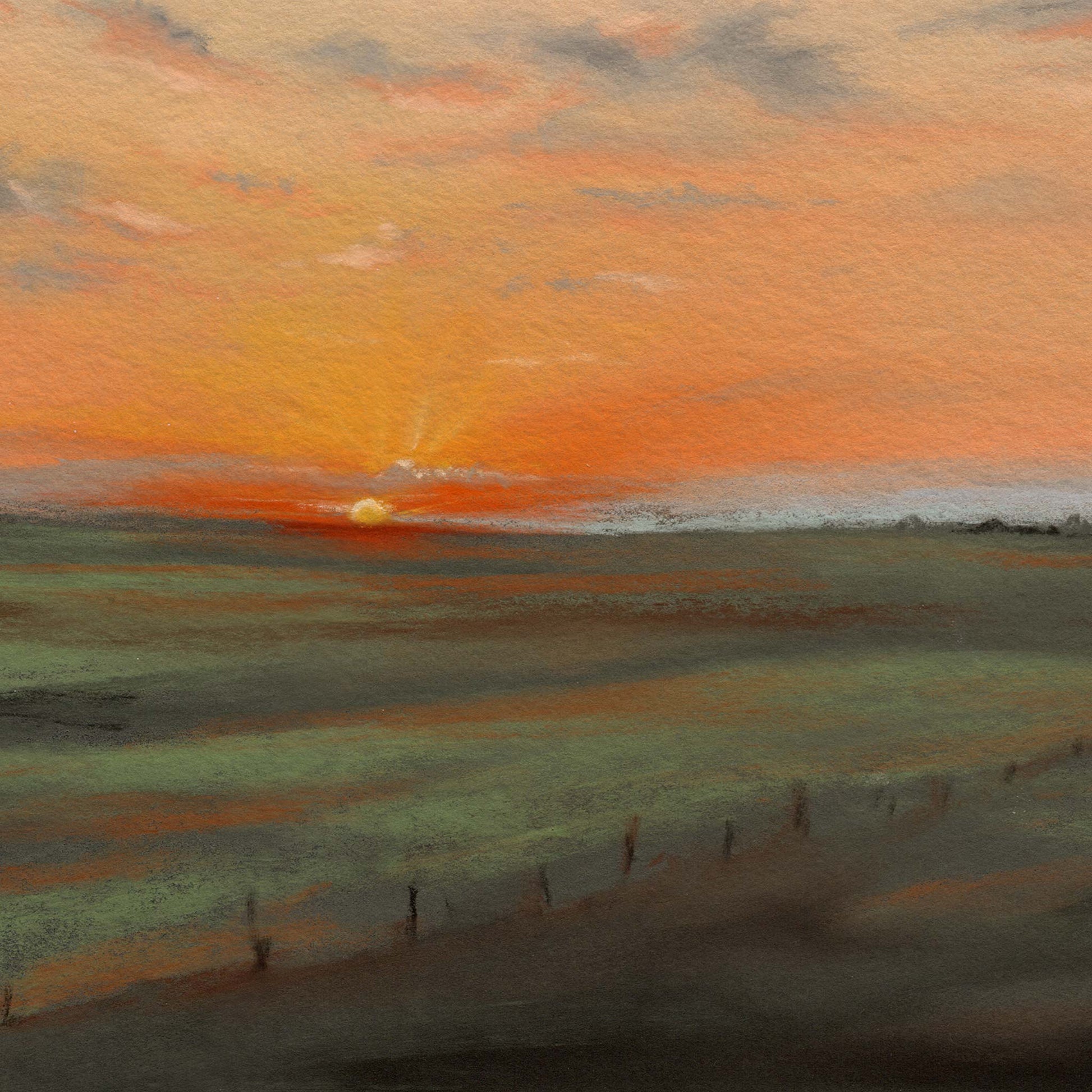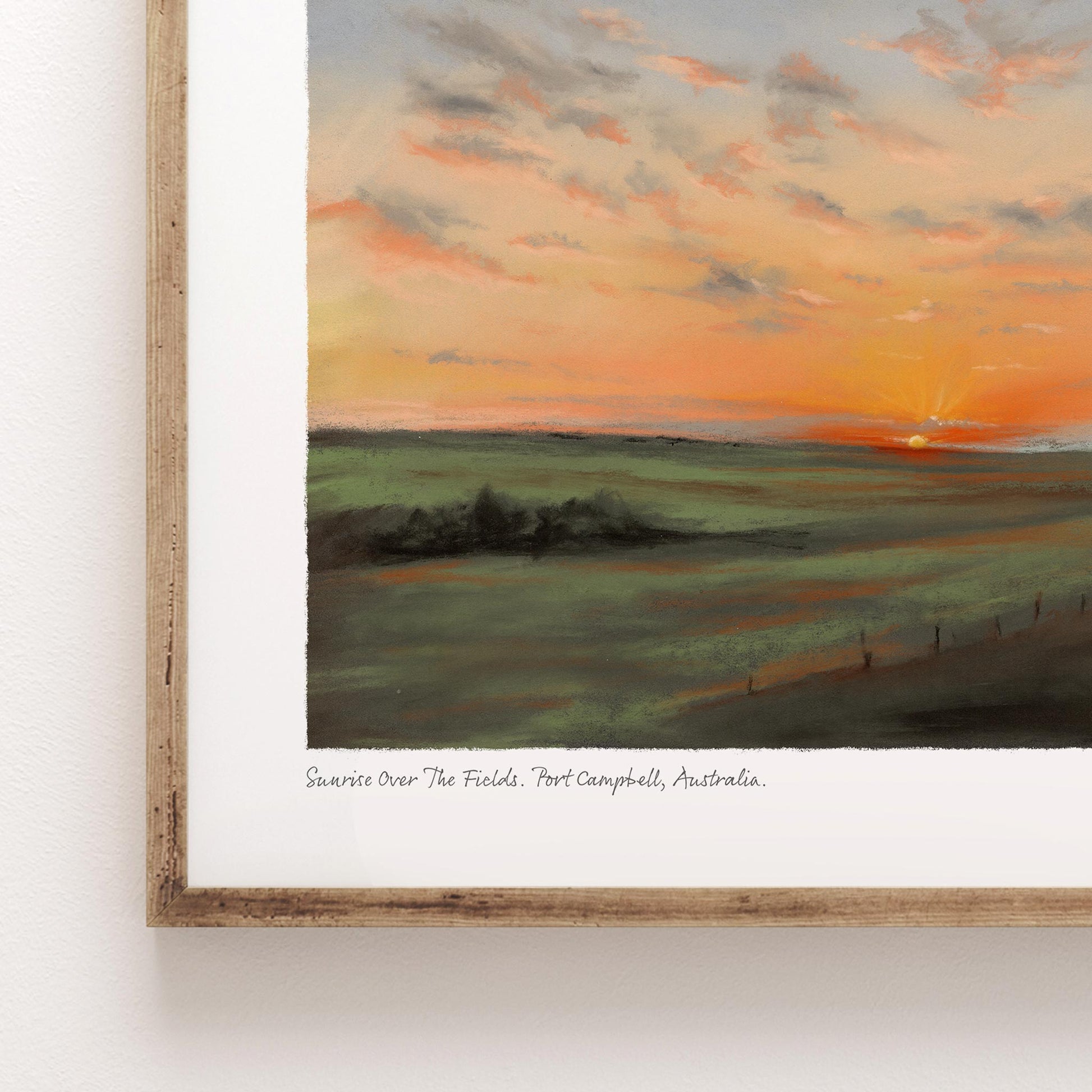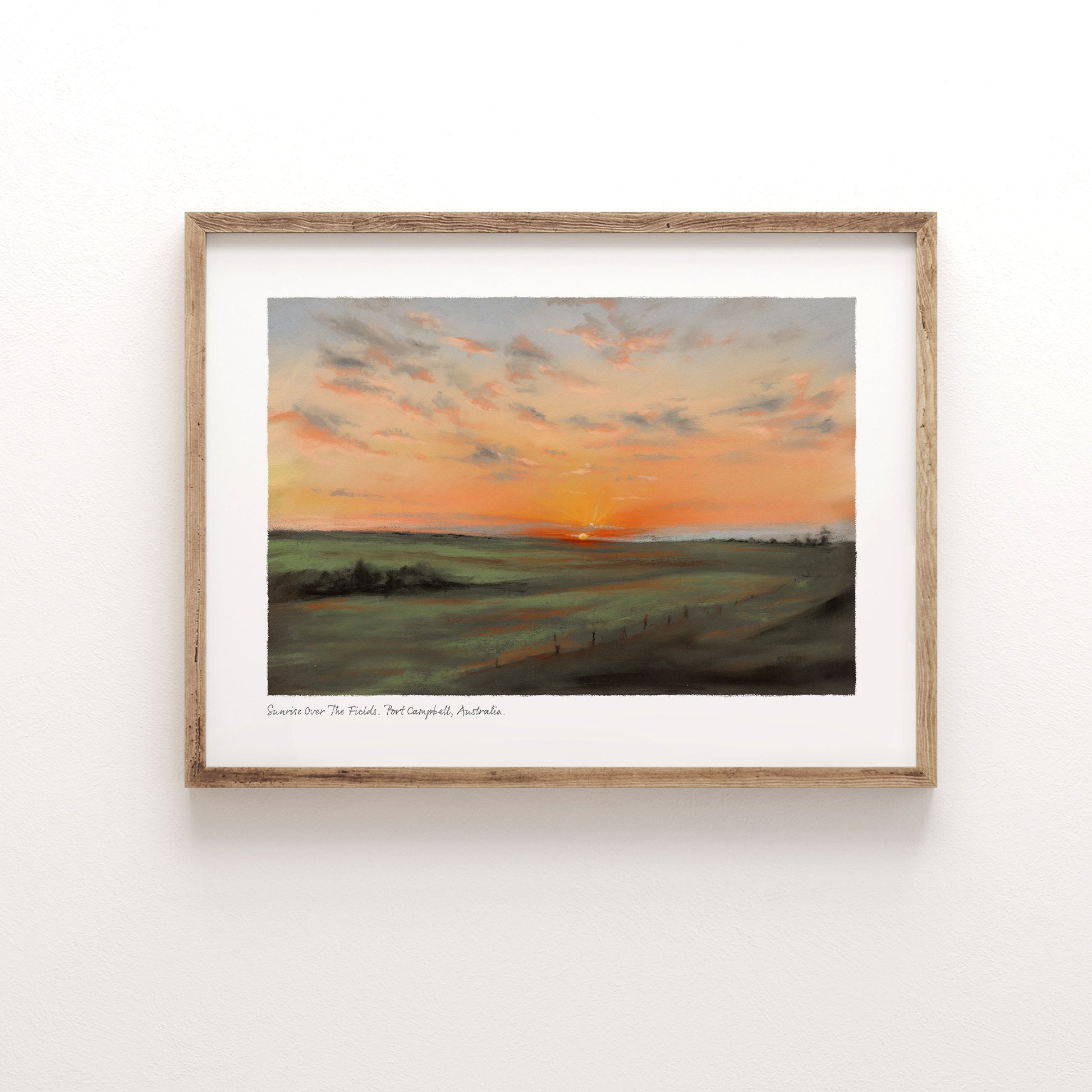 Warm sunrise hues bath the rolling hills of Port Campbell. Internationally acclaimed soft pastel artist Brittany March presents this fine art print of her original landscape, perfect for bringing a sense of calm to any space.