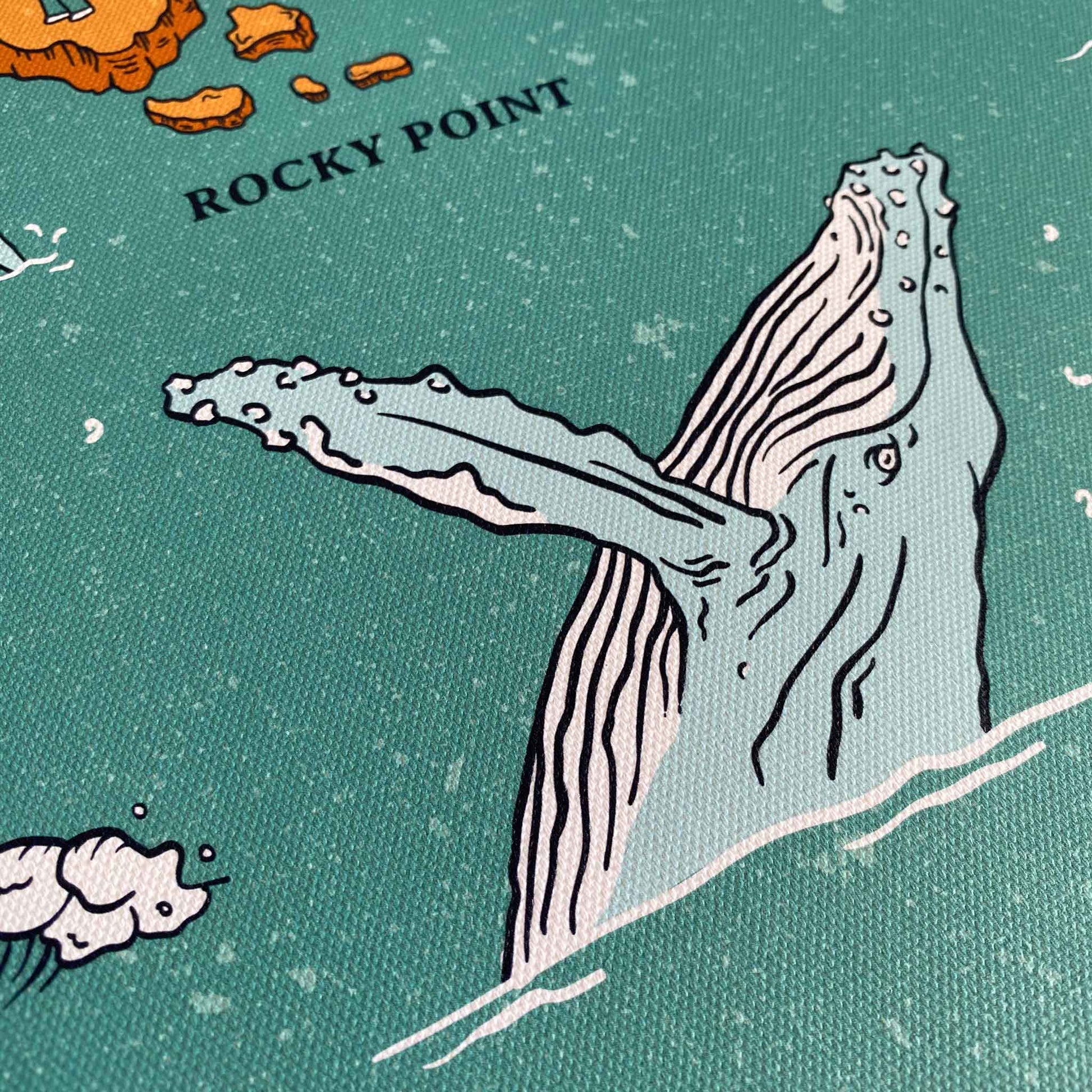 Illustrated map of Torquay & Jan Juc on the Surf Coast, Victoria — a celebration of the character, charm and quirks of the places we live and explore. This much-loved artwork is now available as a premium A1 canvas print, offering a bold, beautiful way to bring the coast into your home.
